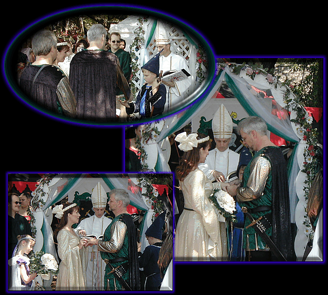 Lord Andrew the Ring Bearer presented the Our Rings in a leaded glass box that had our Family Crest etched upon it. The box was keepsake for Lord Andrew. Then once again the Bishop spoke, Lord Paul repeat these words after me whilst placing the ring on Lady Cas's finger......